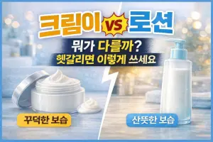 크림이랑 로션, 다 같은 보습 제품처럼 보이지만실제로는 사용하는 목적과 질감이 조금 다릅니다. 이걸 모르고 아무거나 쓰면번들거리거나, 건조함이 더 심해질 수도 있어요. 간단하게 정리해드릴게요. 로션은 가볍게 쓰는 보습 로션은 수분 함량이 많고제형이 가벼운 편입니다. 그래서 피부에 부담 없이 흡수되고아침이나 여름철에 사용하기 좋습니다. 지성 피부나 복합성 피부라면로션만으로도 충분한 경우가 많습니다. 크림은 보습을 잡아주는 역할 크림은 로션보다 더 […]