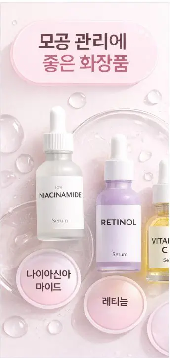 모공 관리에는 다음 성분이 포함된 화장품이 도움이 됩니다.