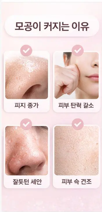 특히 피지가 많아지면 모공이 넓어지기 쉽고, 탄력이 떨어지면 모공이 더 크게 보이게 됩니다.